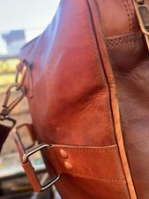Borsoni fatto a mano. Di colore marrone ed ancora fatto di pelle così come di stile messengerborsa a tracolla ed inoltre una dimensione di dimensione / Incluso: palestra, viaggio. Usato. Italia ¬