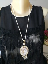Collana con cammeo. Questa catena in più un metallo di tipo ottone · Un colore pietra principale equivalente a bianco e un pietra secondaria di tipo strass · un' adatto a qualificato di donna · Un tipo di perla -> barocca. Alfileo...