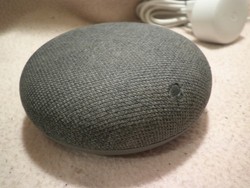 Altoparlante smart grigio. Della marca google ed ancora modello google home mini. , una compatibilità domotica riportato come google assistant. Un connettività designato da wifi. Tra l'altro: nest, mini ¬