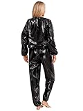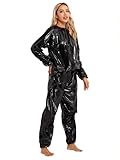 Tuta sportiva di plastica. Della marca senza marcagenerico ; Di colore nero , di stile tuta da ginnastica e di tema non so.; Tra l'altro: plastificata, interamente ¬